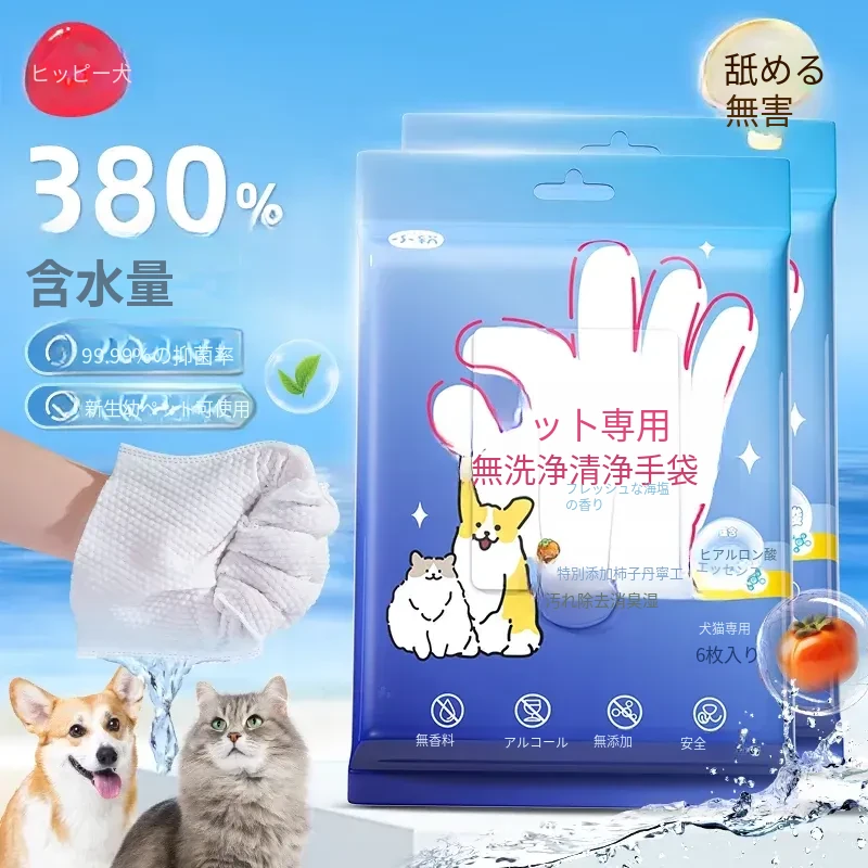 ペット用洗わず使える手袋!犬や猫に最適なバス不要のウェットティッシュ!臭いを取り除き、簡単に清潔に保てるドライクリーニングの必需品!快適なペットライフをサポートします!