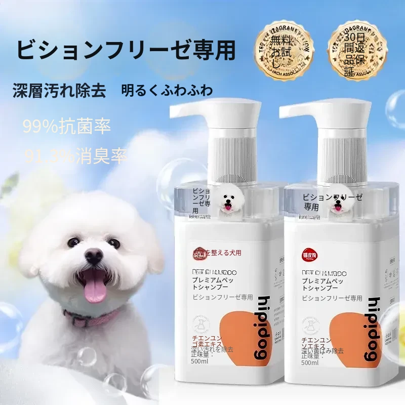 ビションフリーゼ専用シャンプー - 抗菌・消臭効果で持続する香り!子犬にも優しい洗浄力で、ふわふわの白い毛をキープ。愛犬とのバスタイムを特別なものに!