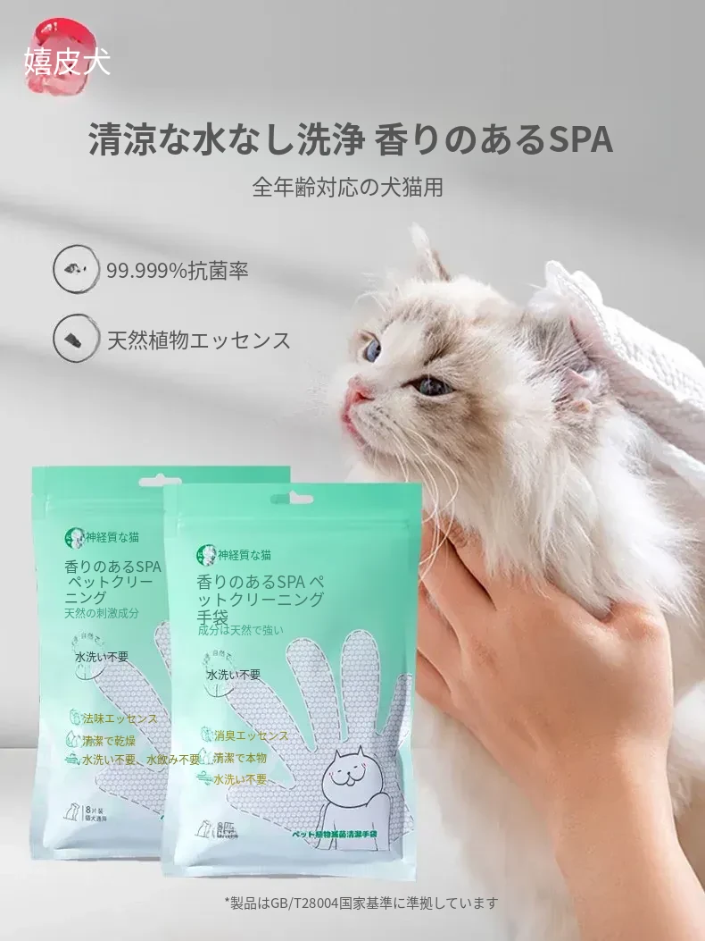 嬉しいヒッピー犬のペット用洗わない手袋!猫の清潔と乾燥に最適な除臭・抑菌ウェットティッシュ。おしゃれな猫用品を揃えて、愛猫のお手入れを簡単に!