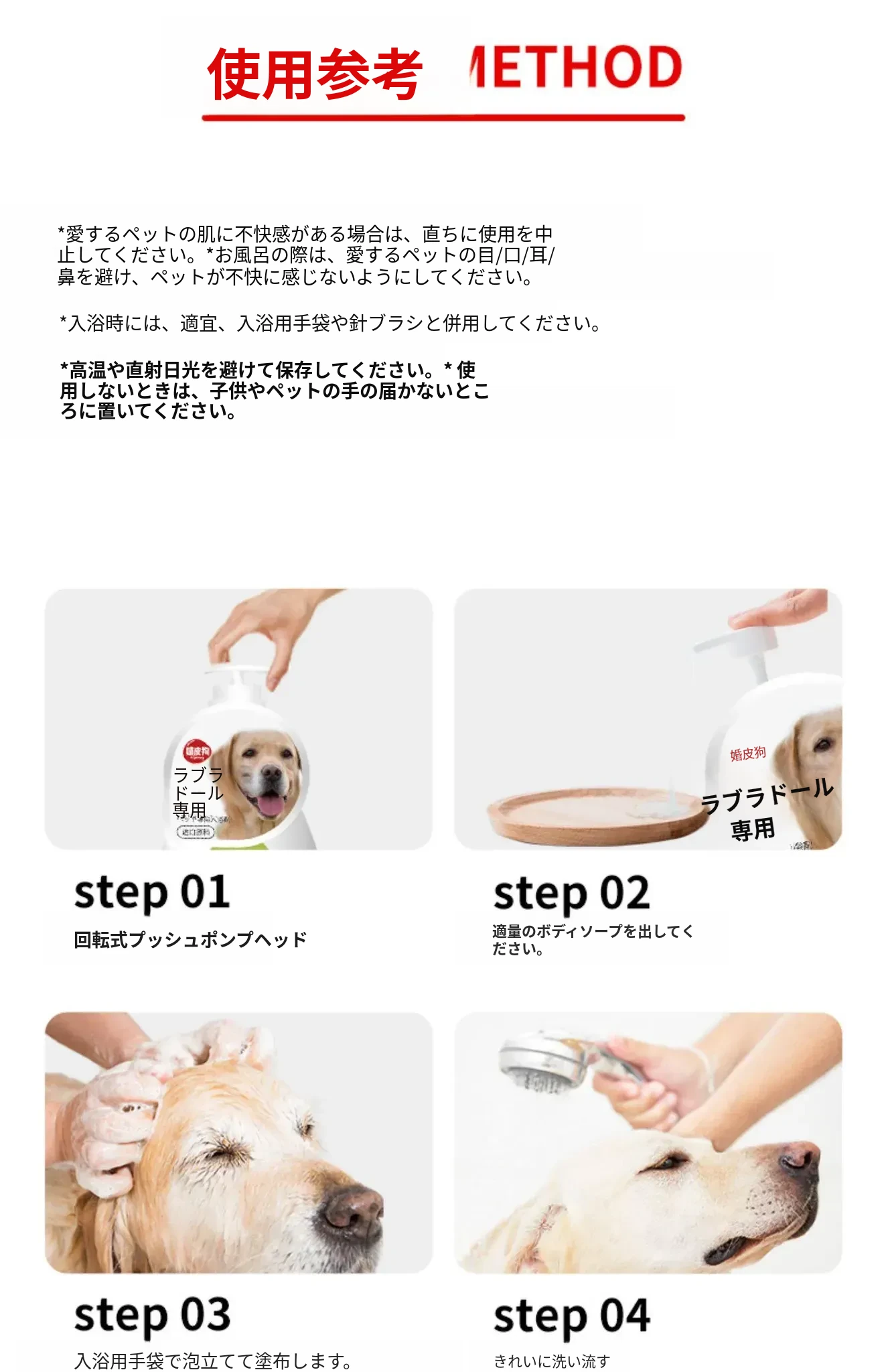 ラブラドール専用シャンプー|子犬・成犬用|抗菌・消臭・かゆみ止め効果|愛犬をリフレッシュ!洗浄力抜群で、ふわふわの毛並みを実現するお風呂アイテム!